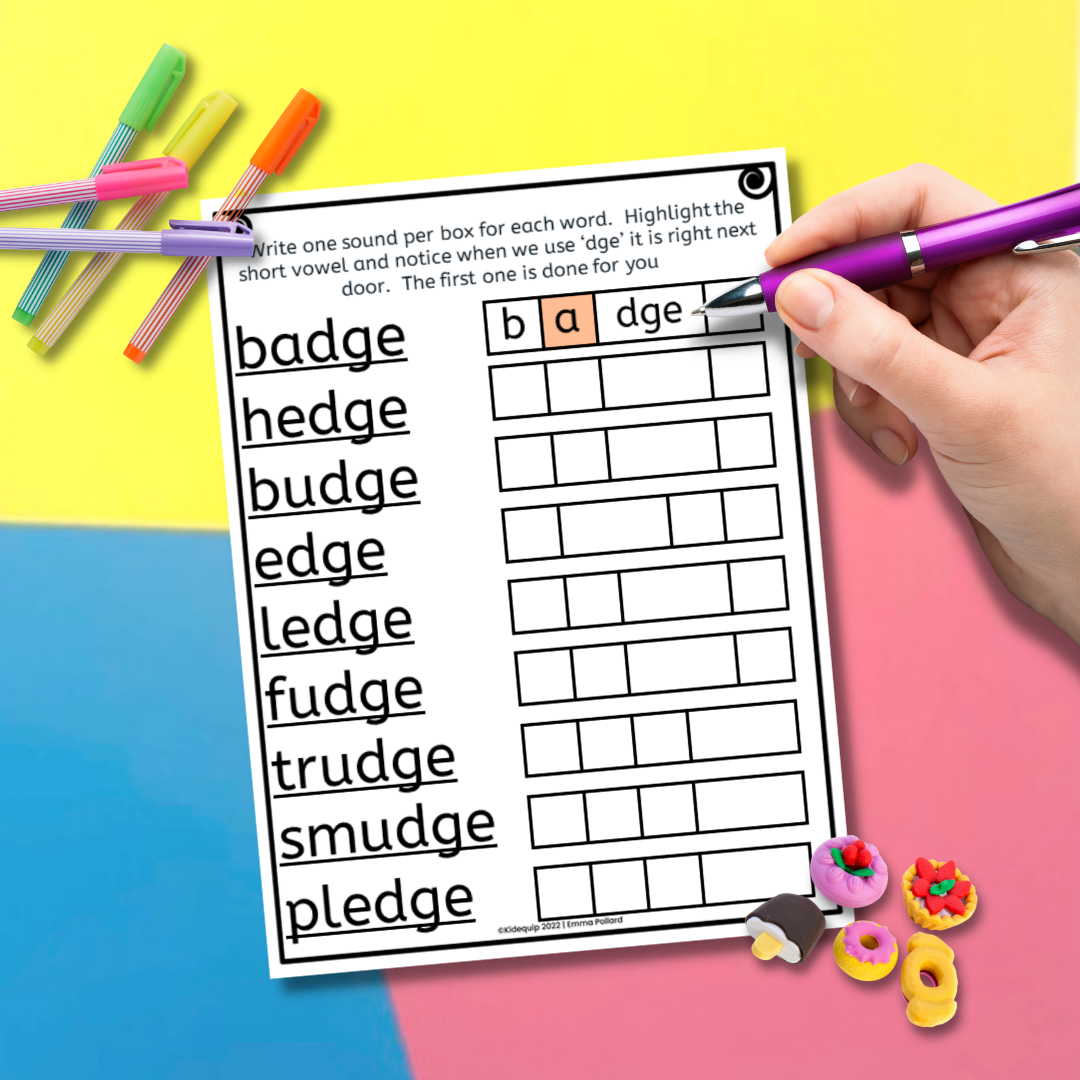 - Finally, I get my students to read the word, sound by sound, blending the sounds and then writing the word down without the boxes.